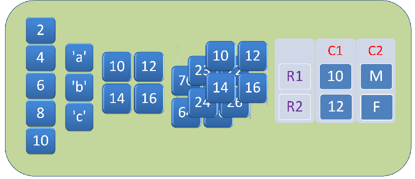 x <- c(1:20); y <- rep(c('R1','R2','R3'), each=4); z <- rep(c(T,F), length=4)