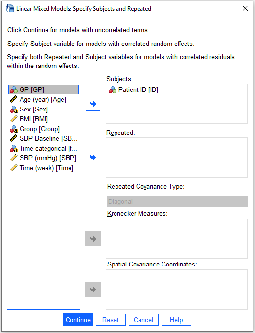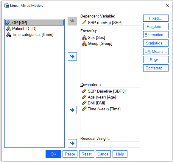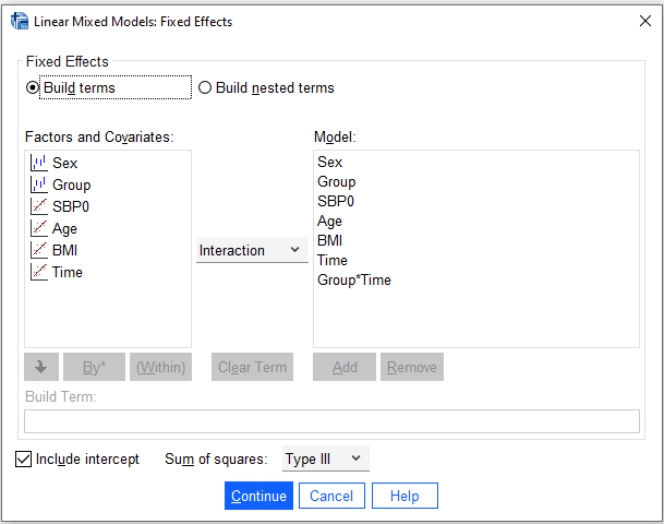 /FIXED = Sex Group SBP0 Age BMI Time Group*Time | SSTYPE(3)