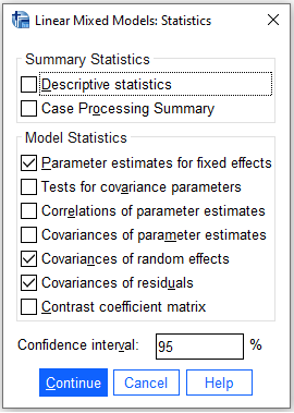 /RANDOM = INTERCEPT | SUBJECT(ID) COVTYPE(VC) 6.3 Summary